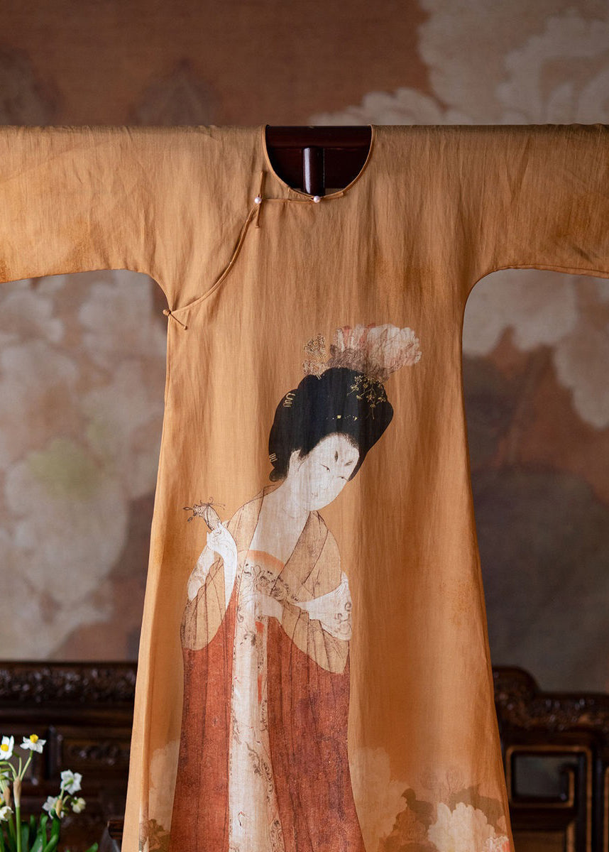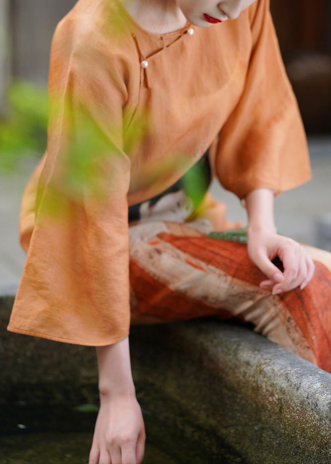 New Orange Button Print Cotton Maxi Dresses Bracelet Sleeve