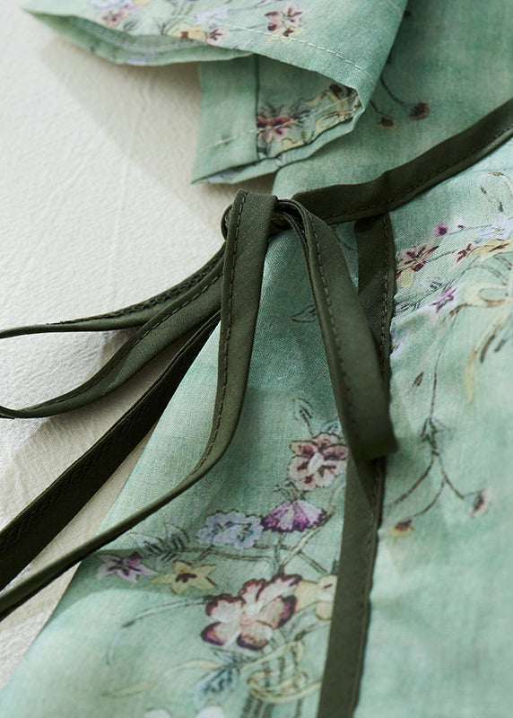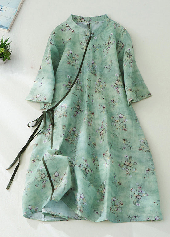 New Red Lace Up Print Silk Cotton Mid Dress Half Sleeve
