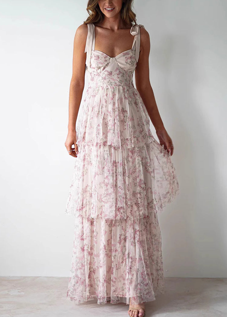 New Yellow Lace Up Print Chiffon Spaghetti Strap Dress Sleeveless