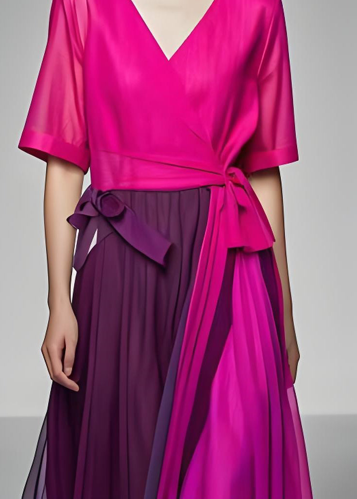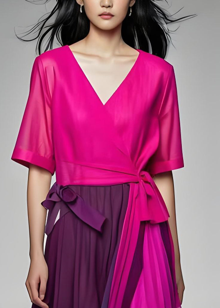 Organic Colorblock V Neck Wrinkled Patchwork Cotton Dresses Summer