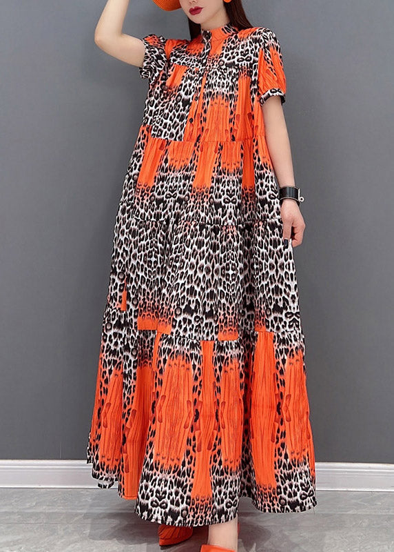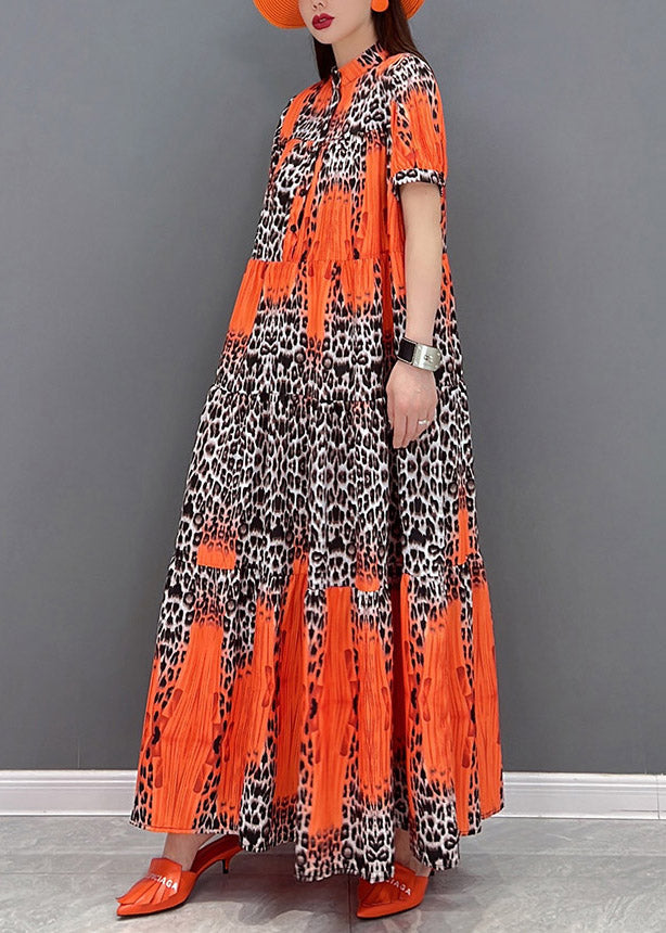 Red O-Neck Wrinkled Vacation Dresses Short Sleeve