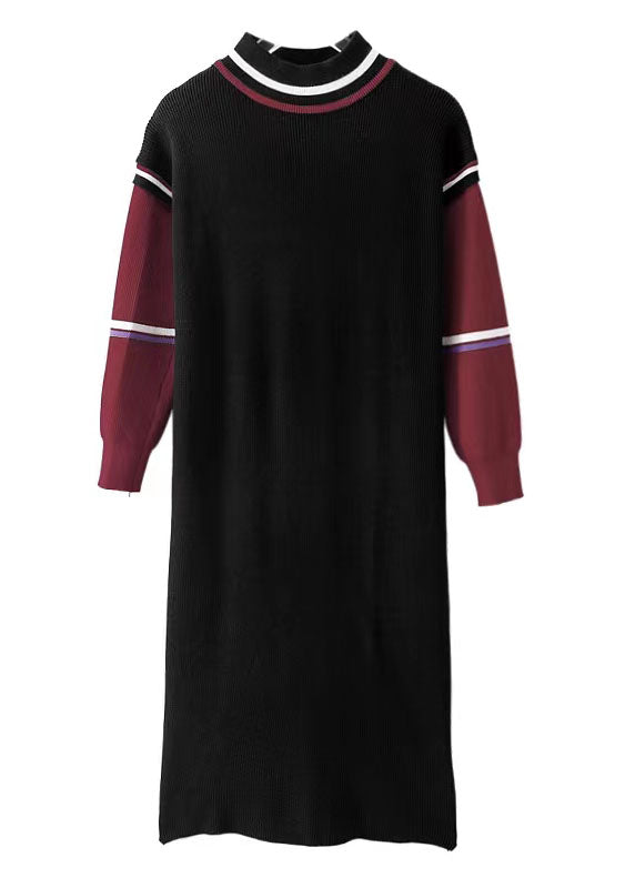 Simple O Neck Rough Edge Sweater Weather Upcycle Black Hipster Knitwear