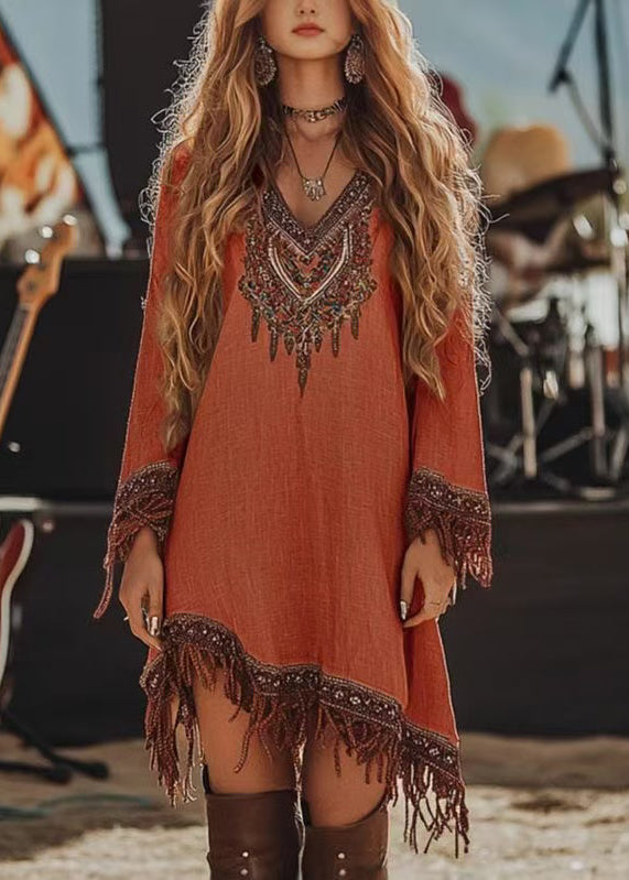 Style Blue Tasseled Print Cotton Holiday Dress Spring