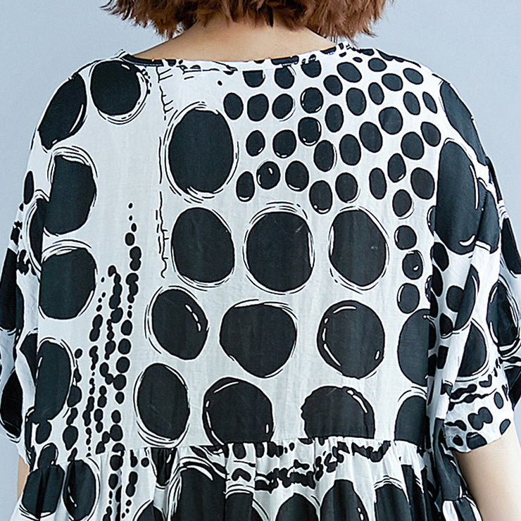 stylish black cotton linen maxi dress oversized short sleeve print baggy dresses cotton gown casual v neck traveling clothing