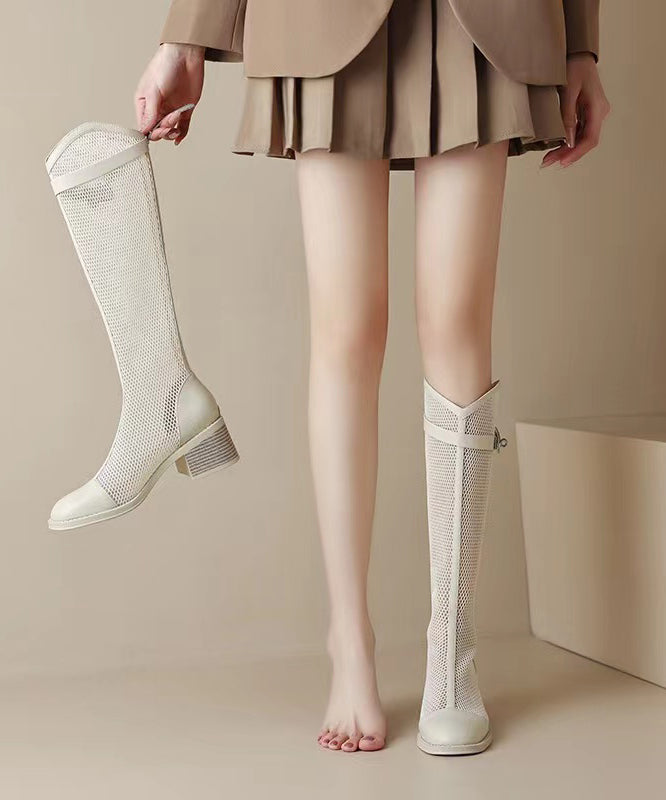 Stylish Black Hollow Out Breathable Mesh Splicing Zipper Boots