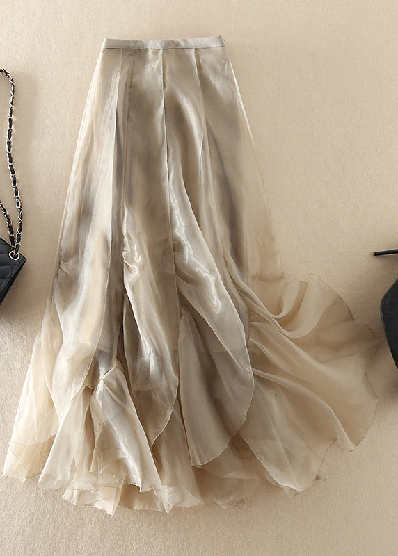 Stylish Champagne Patchwork wrinkled Chiffon Skirt Spring