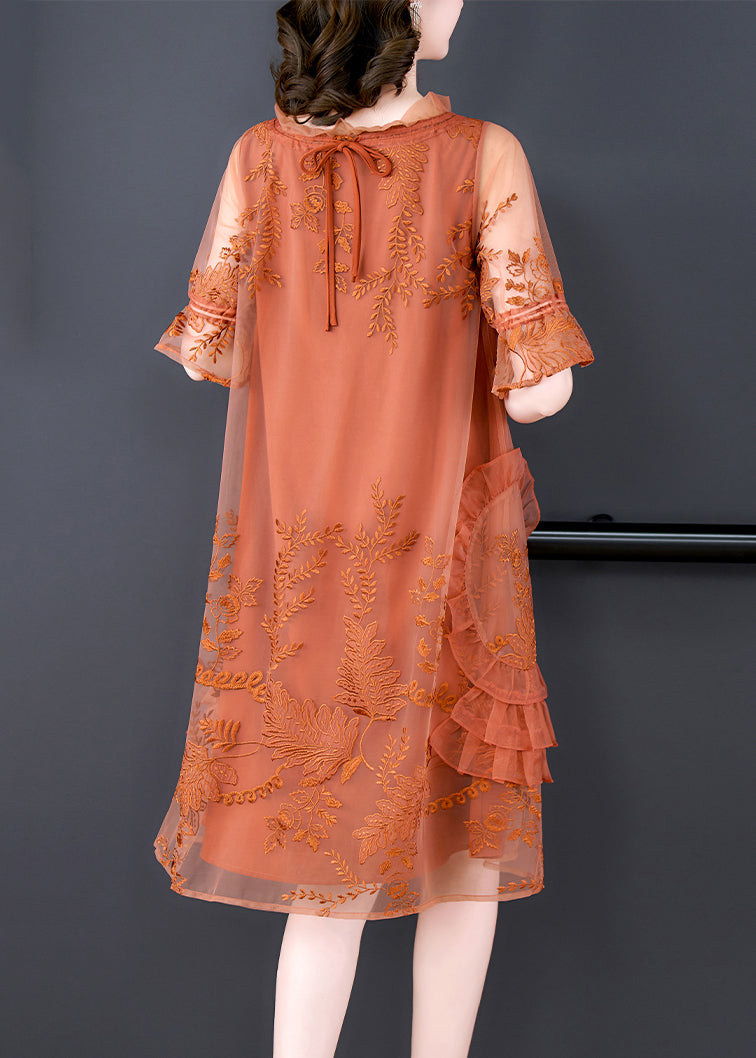 Stylish Green Embroideried Patchwork Tulle Mid Dresses Summer