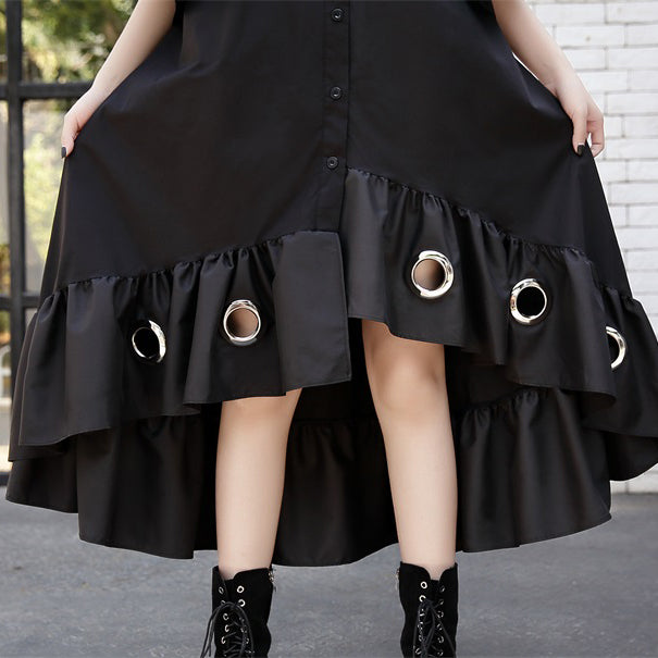 fine black patchwork cotton maxi dress trendy plus size hollow out gown casual asymmetric hem cotton caftans