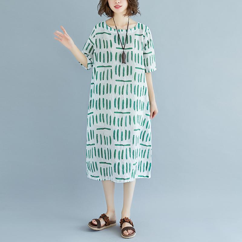 This dress is made of cotton or linen fabric, soft and breathy.