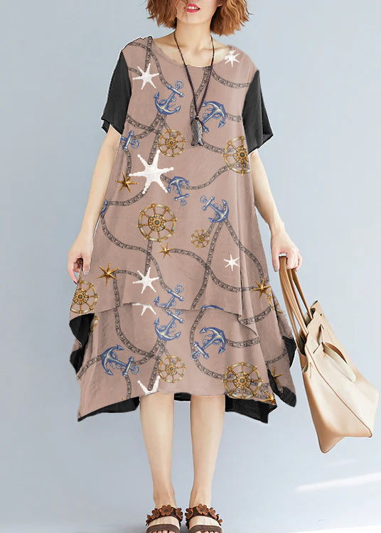 Vivid brown necklace tunics for women plus size Fabrics o neck asymmetric oversized Summer Dress