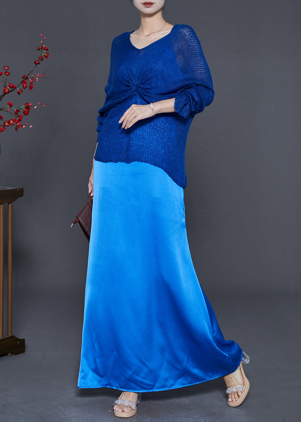 Women Blue Asymmetrical Design Knit Tops And Dresses Two Piece Suit Set Fall