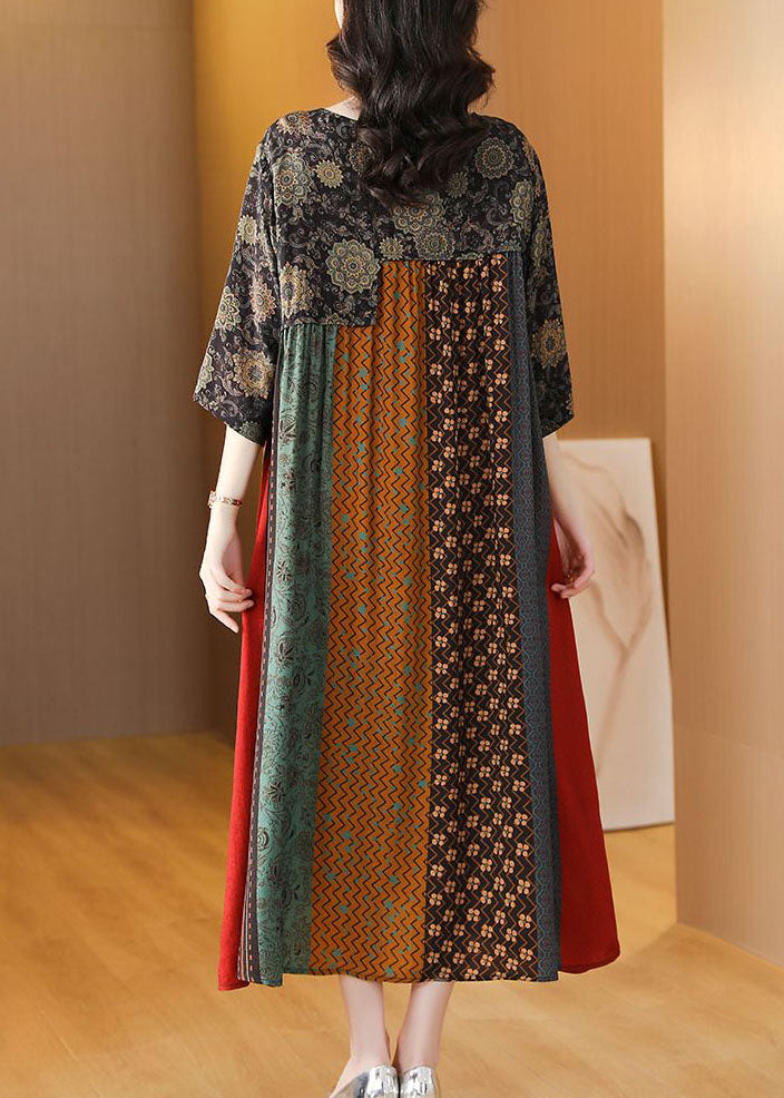 Women Colorblock O Neck Print Striped Patchwork Silk Dresses Summer