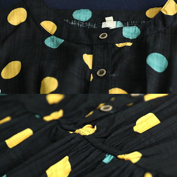 women linen shift dress oversized Loose Short Sleeve Dots Printed White Pleated Dress