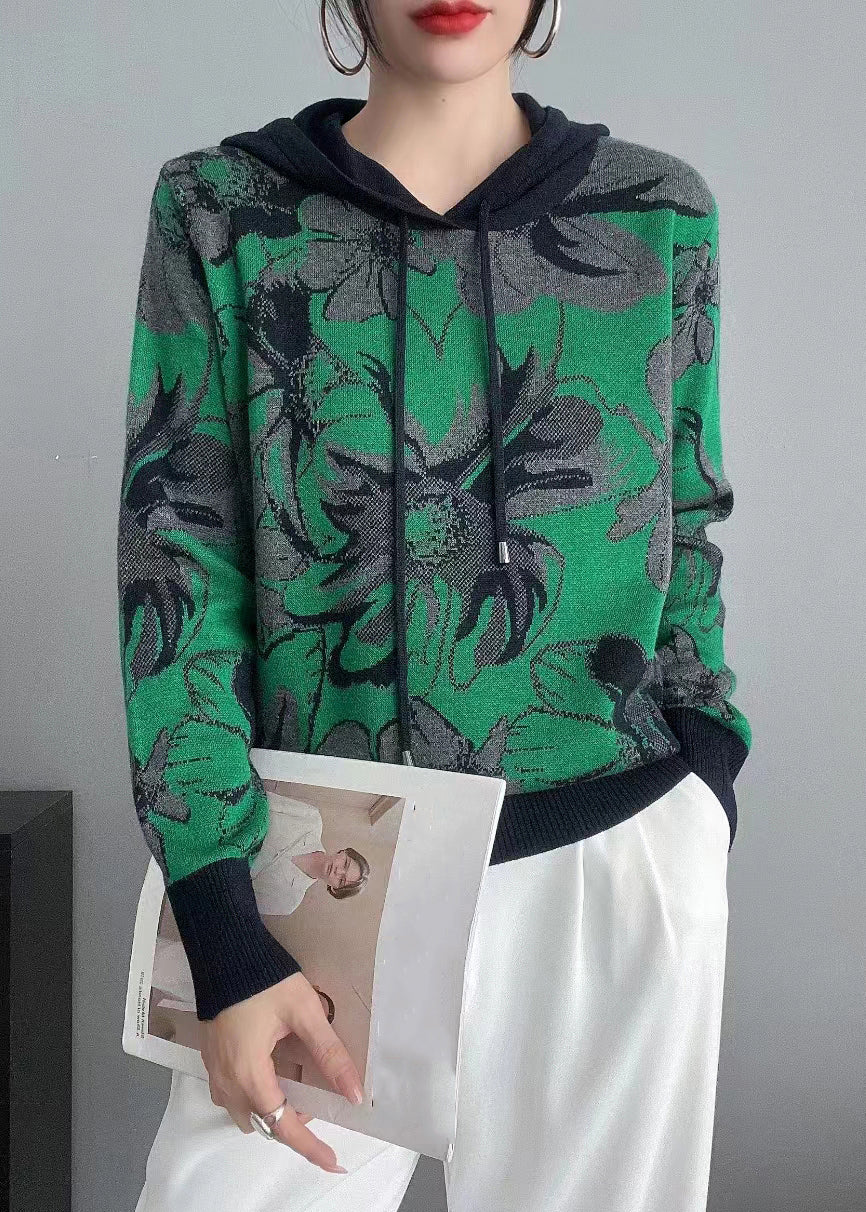 Women Orange Hooded Patchwork Cozy Knit Sweaters Long Sleeve