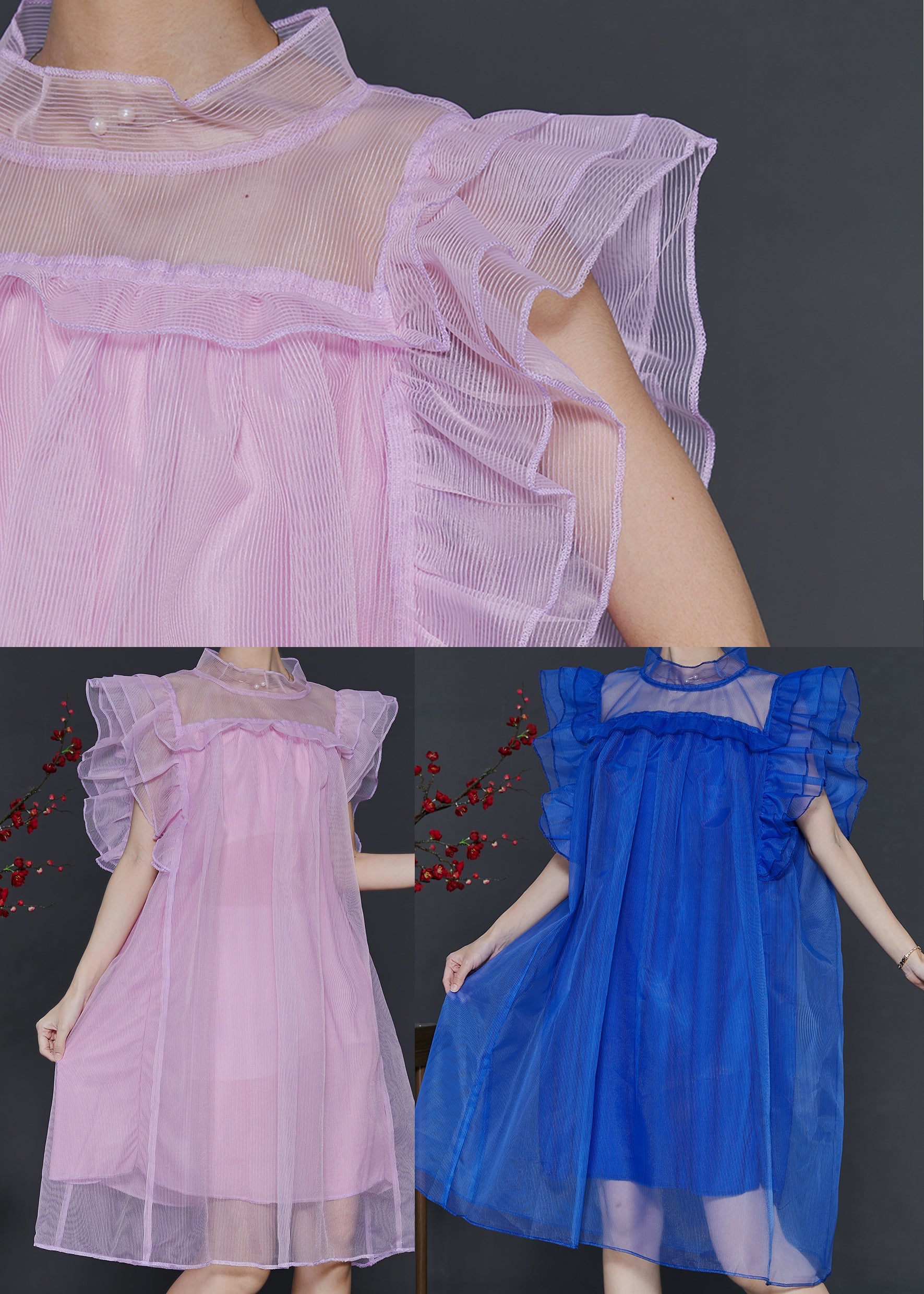 Women Pink Oversized Tulle Vacation Dress Butterfly Sleeve
