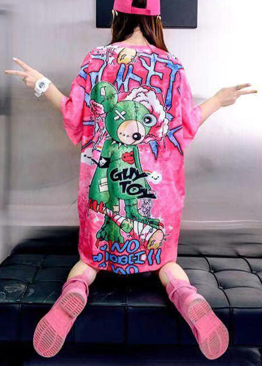 Women Rose O Neck Print Patchwork Cotton Mid Dress Summer