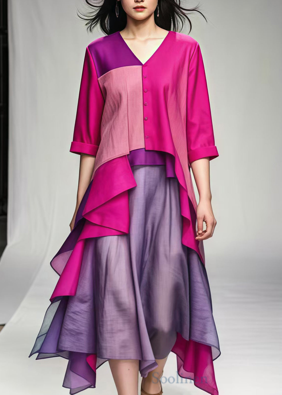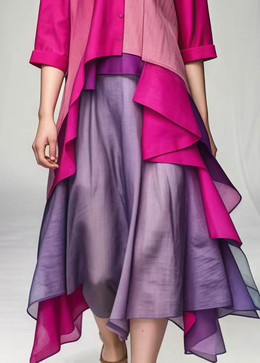 Women Rose V Neck Patchwork Cotton Vacation Dresses Summer