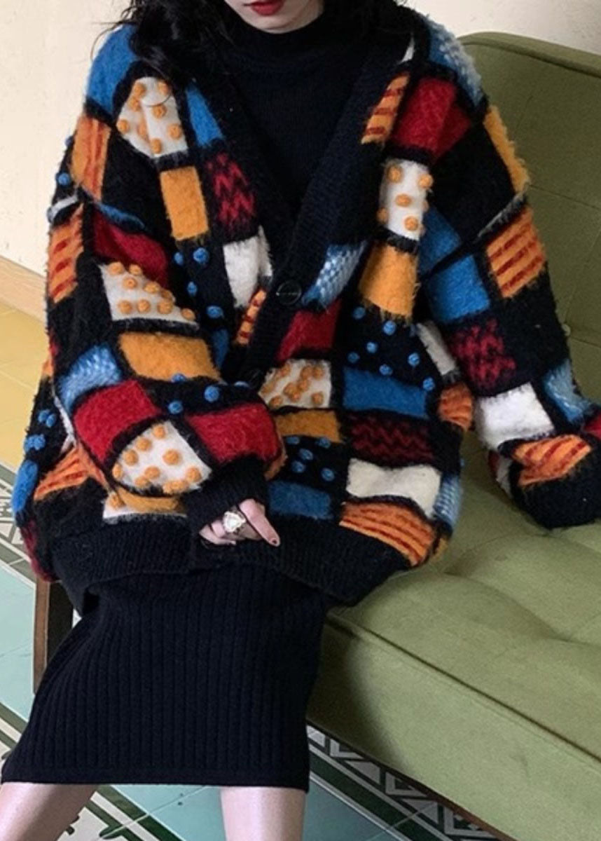 American Style V Neck Plaid Button Woolen Cardigan Fall