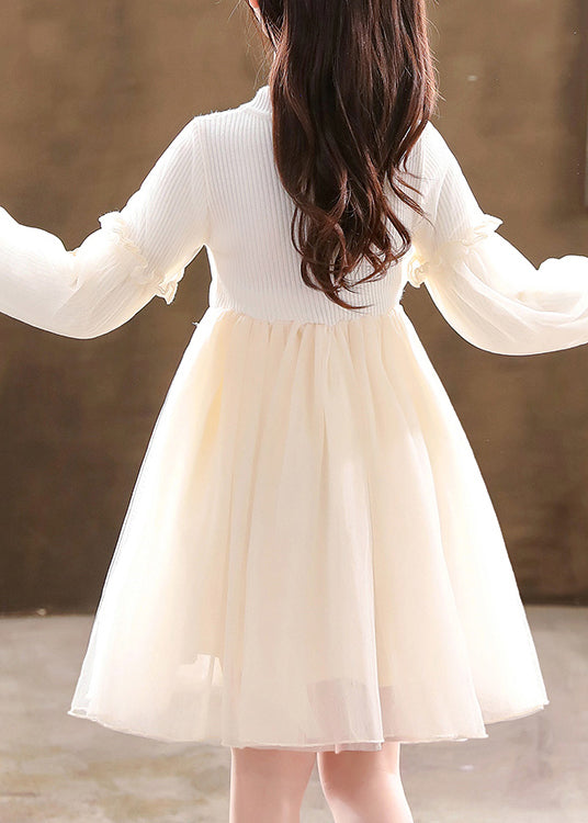Apricot Patchwork Tulle Kids Girls Dresses Wrinkled Butterfly Fall