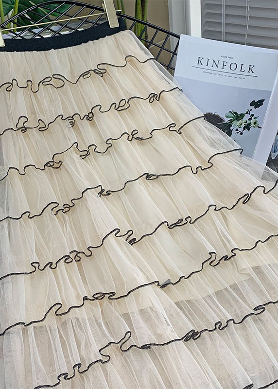 Apricot Patchwork Tulle Skirt Wrinkled High Waist Summer