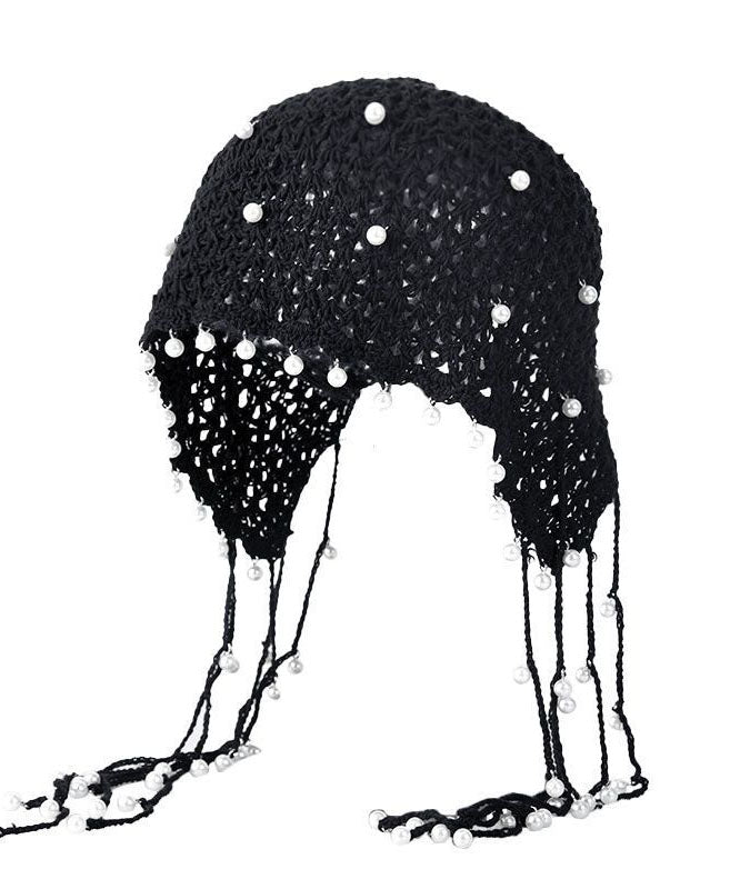 Beautiful Beige Pearl Tassel Hollow Out Knit Bonnie Hat