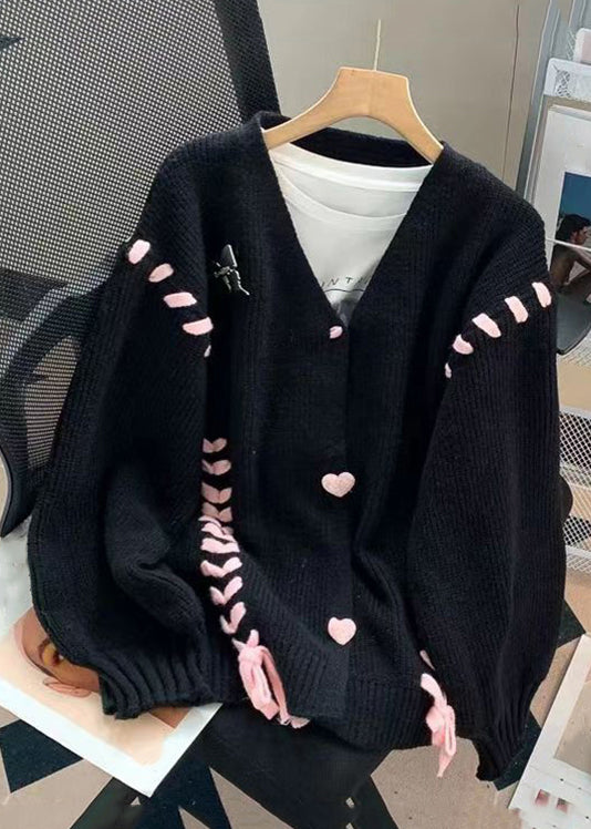 Blue Cozy Patchwork Cotton Knit Cotton V Neck Long Sleeve