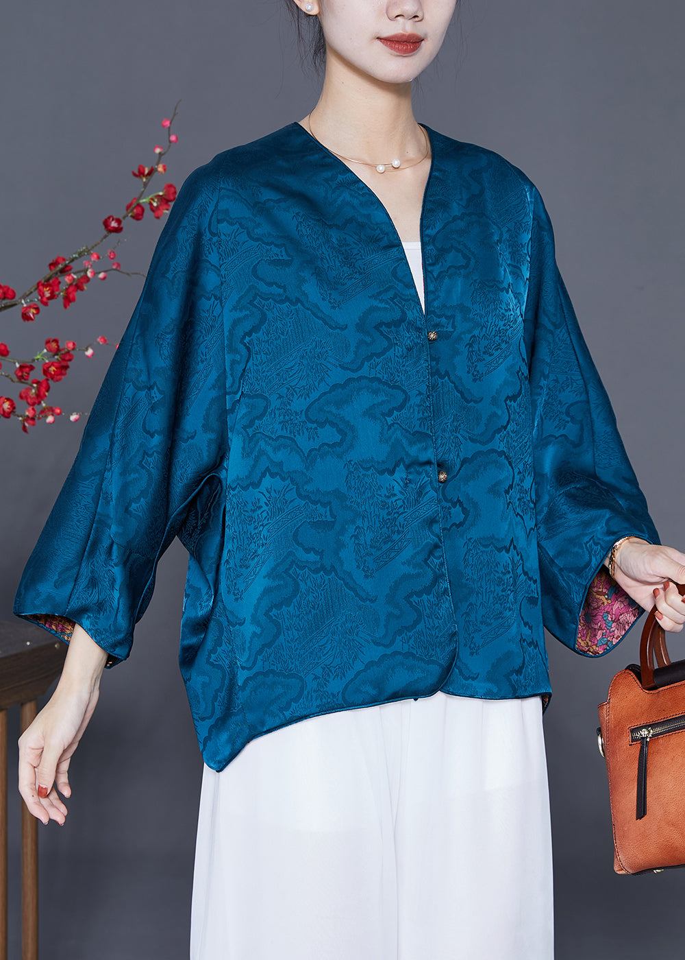 Blue Print Silk Loose Coat Wear On Both Sides Summer