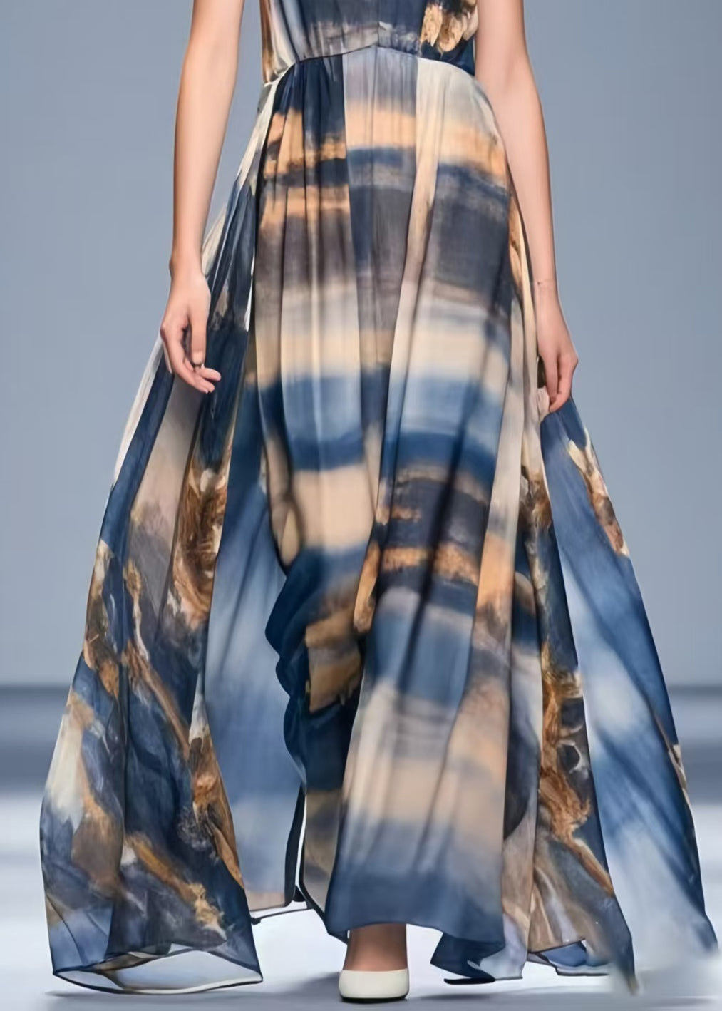 Bohemian Navy Tie Dye Exra Large Hem Chiffon Beach Dress Summer