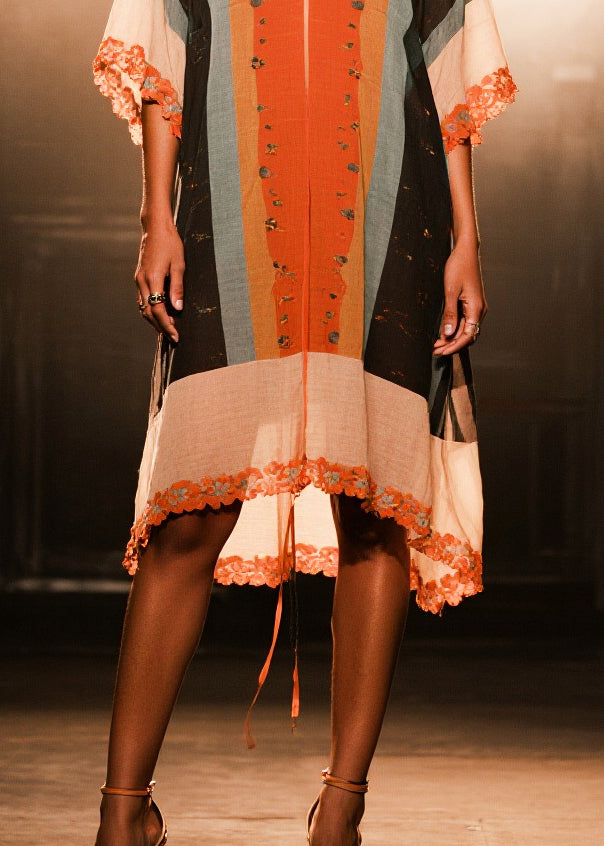 Bohemian V Neck Print Cotton Beach Dress Half Sleeve