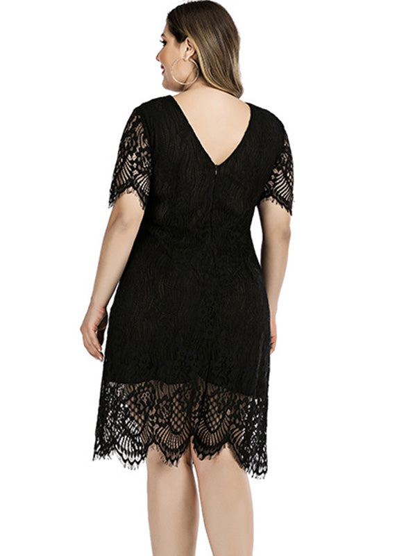 Черное вечернее кружевное вечернее платье в стиле бохо с коротким рукавом