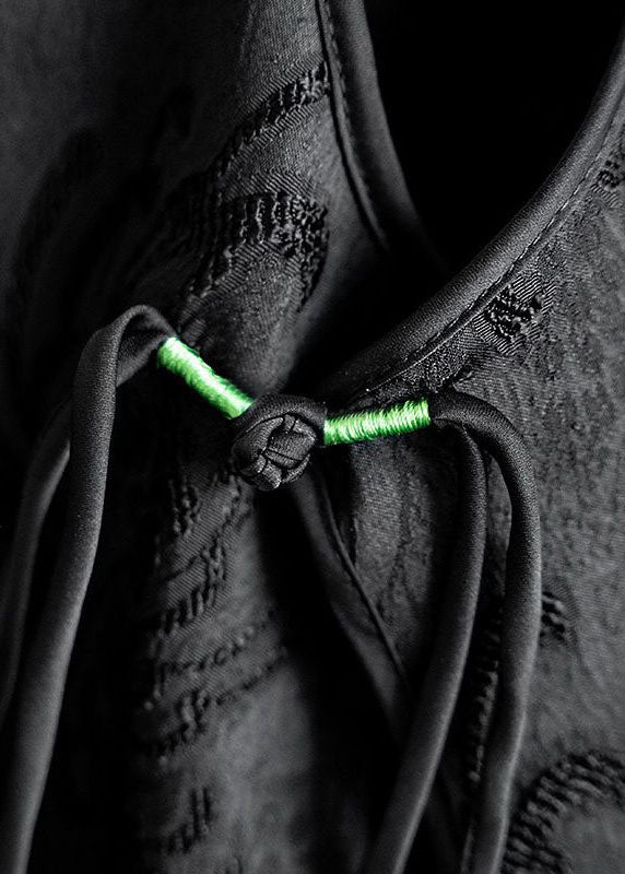 Boho Black Tasseled Patchwork Lace Side Open Silk Vest Sleeveless