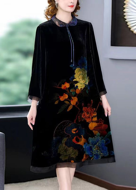 Boho Green Tasseled Lotus Print Silk Velour Dress Bracelet Sleeve