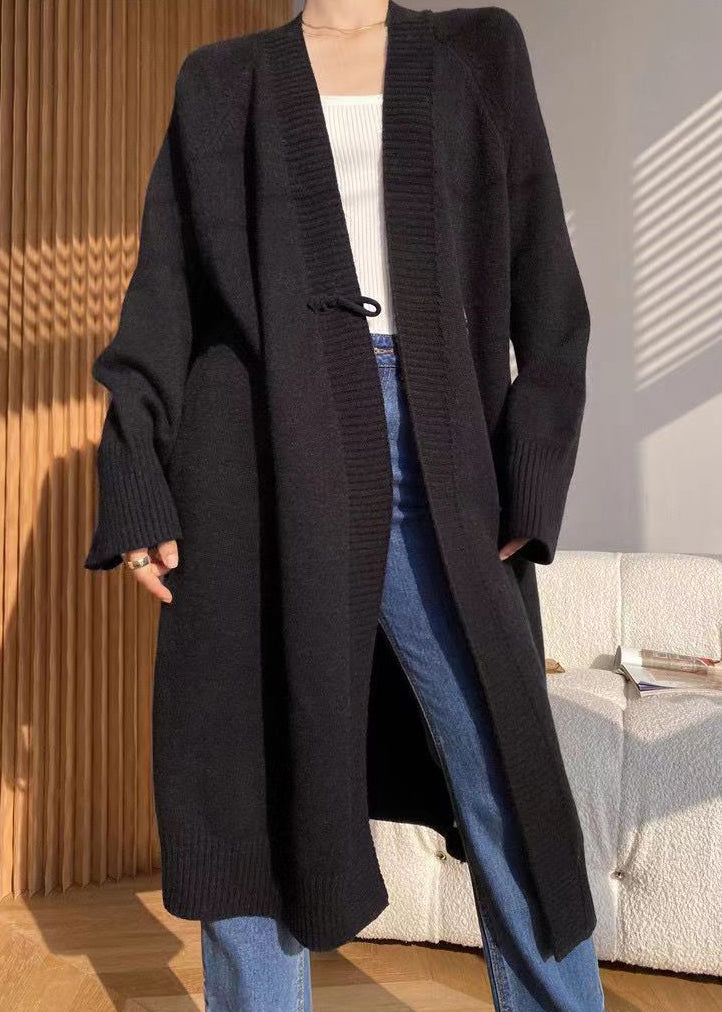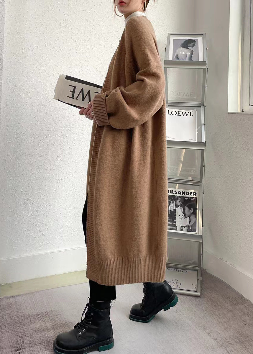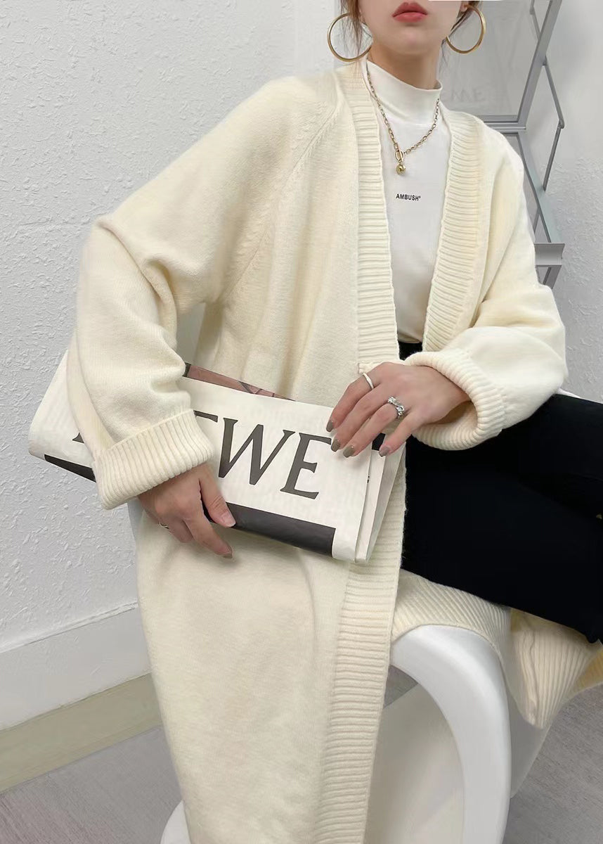 Boutique Beige V Neck Patchwork Knit Loose Cardigan Fall