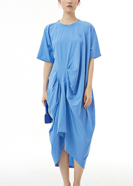 Brief Blue Cozy Cotton Long Dress Summer
