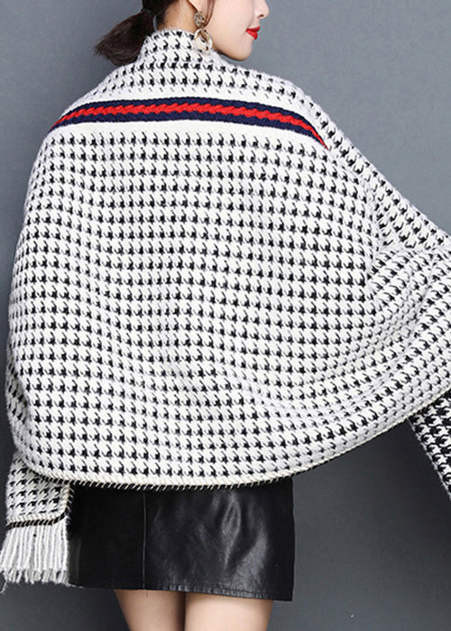 Chic Plaid Tasseled Pockets Patchwork Knit Blended Cardigans Fall
