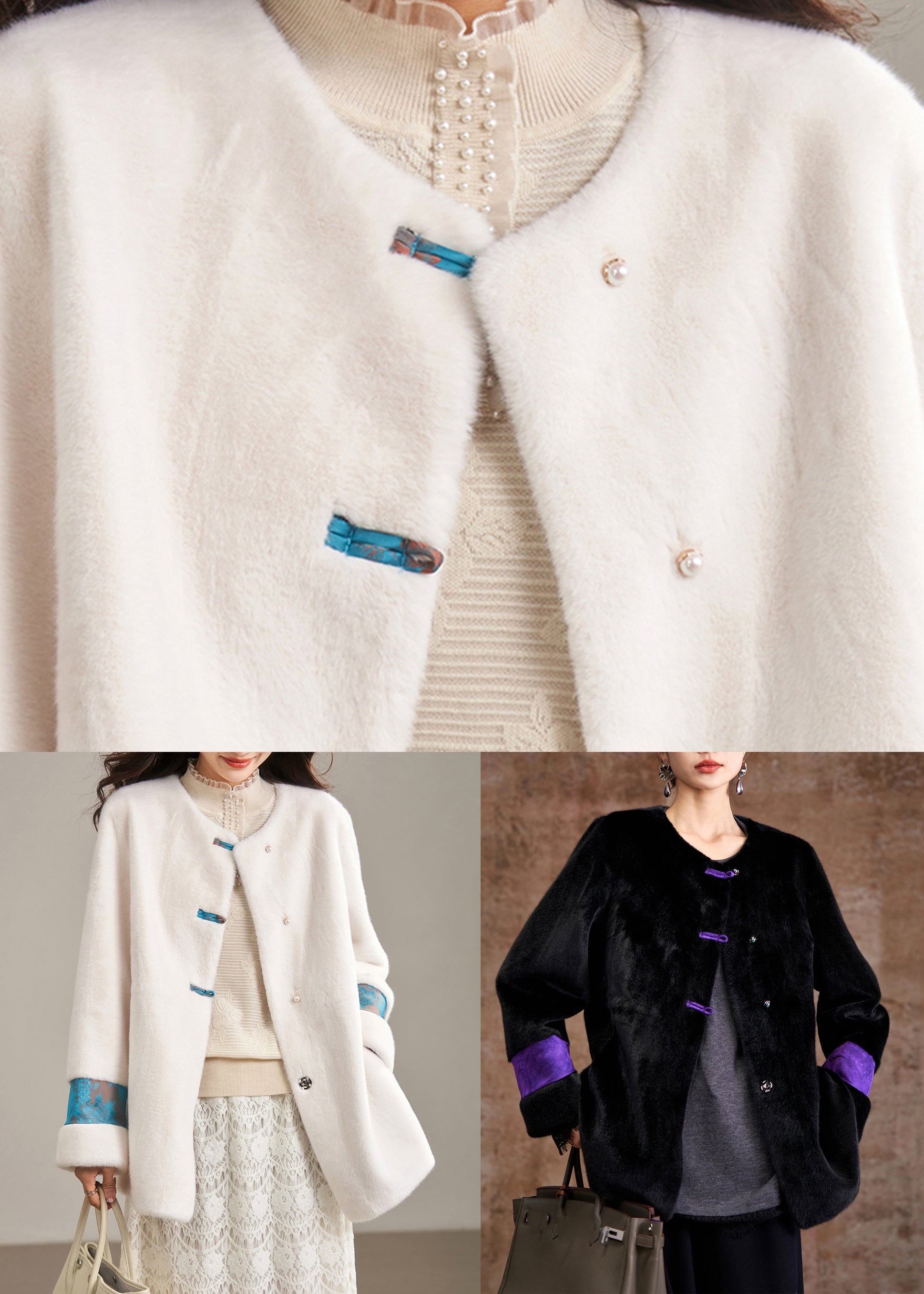 Classy Beige O-Neck Patchwork Leather And Fur Coat Winter
