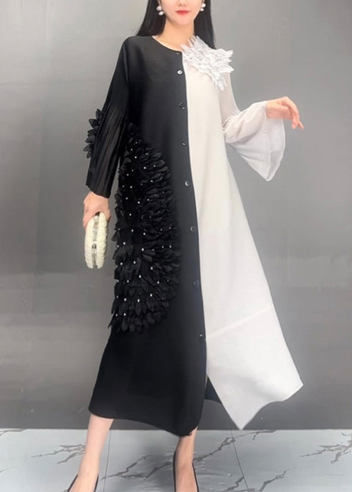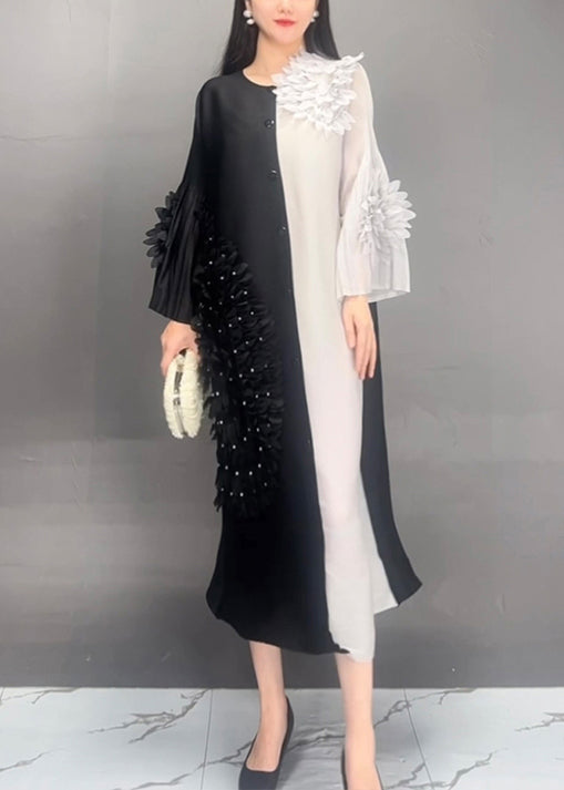Classy Yellow Floral Button Patchwork Silk Dress Fall