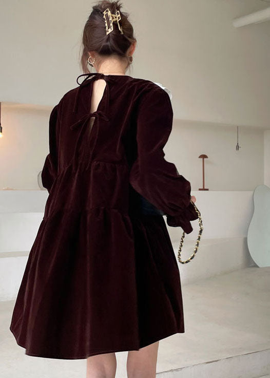 Chocolate Lace Peter Pan Collar Patchwork Velour Dress Winter