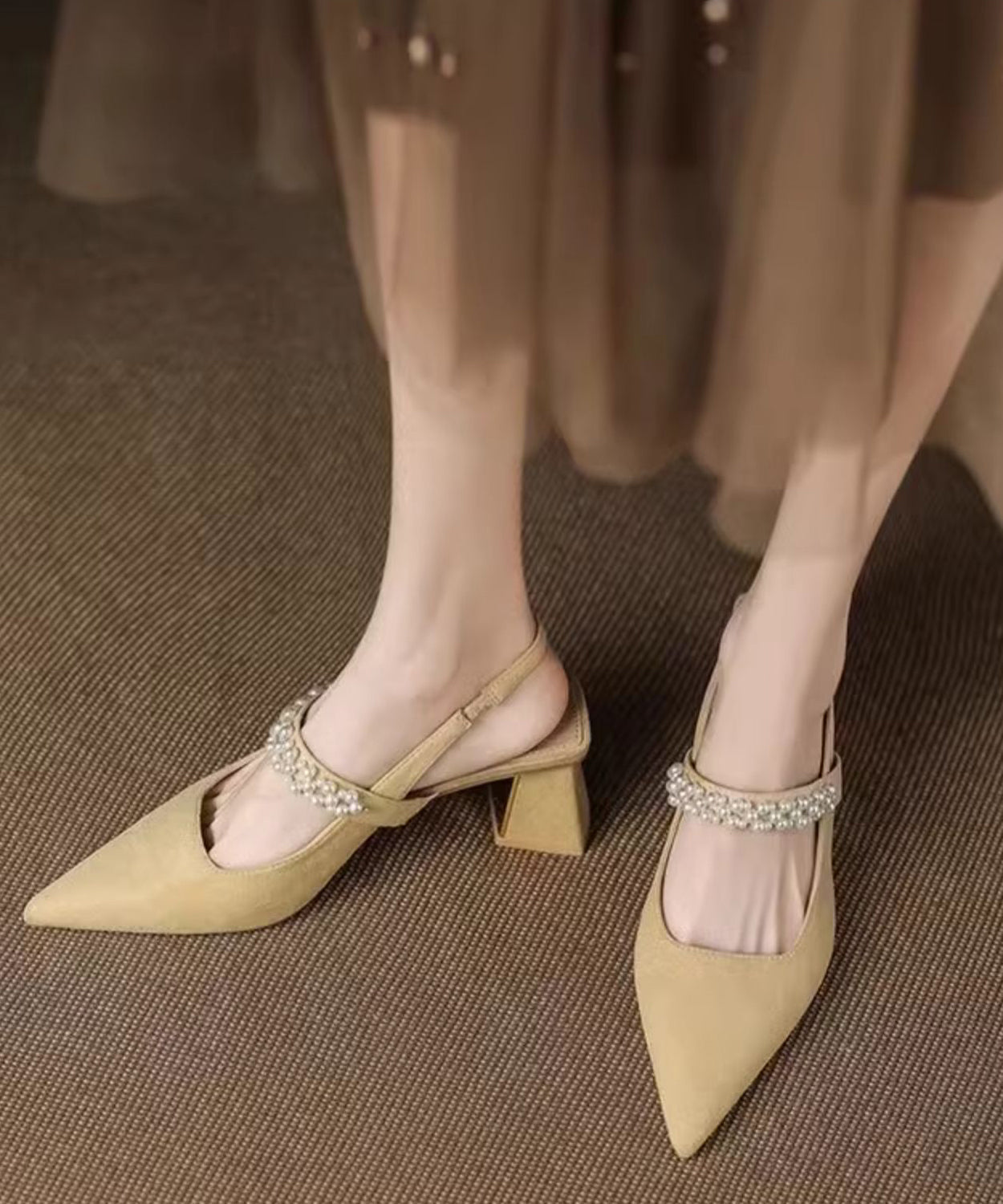 Comfortable Apricot Buckle Strap High Heel Sandals