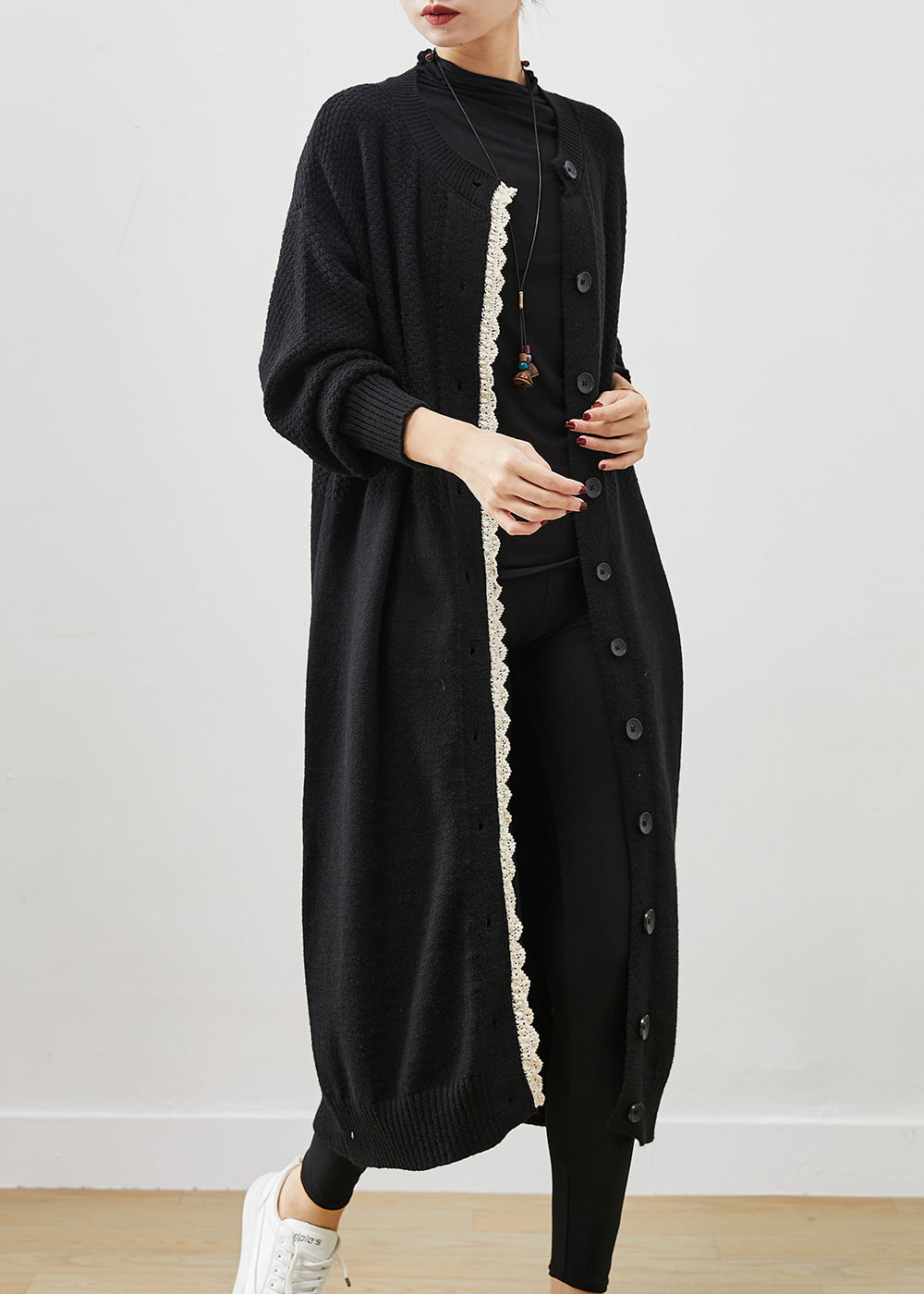 DIY Black Oversized Patchwork Lace Knit Cardigan Spring