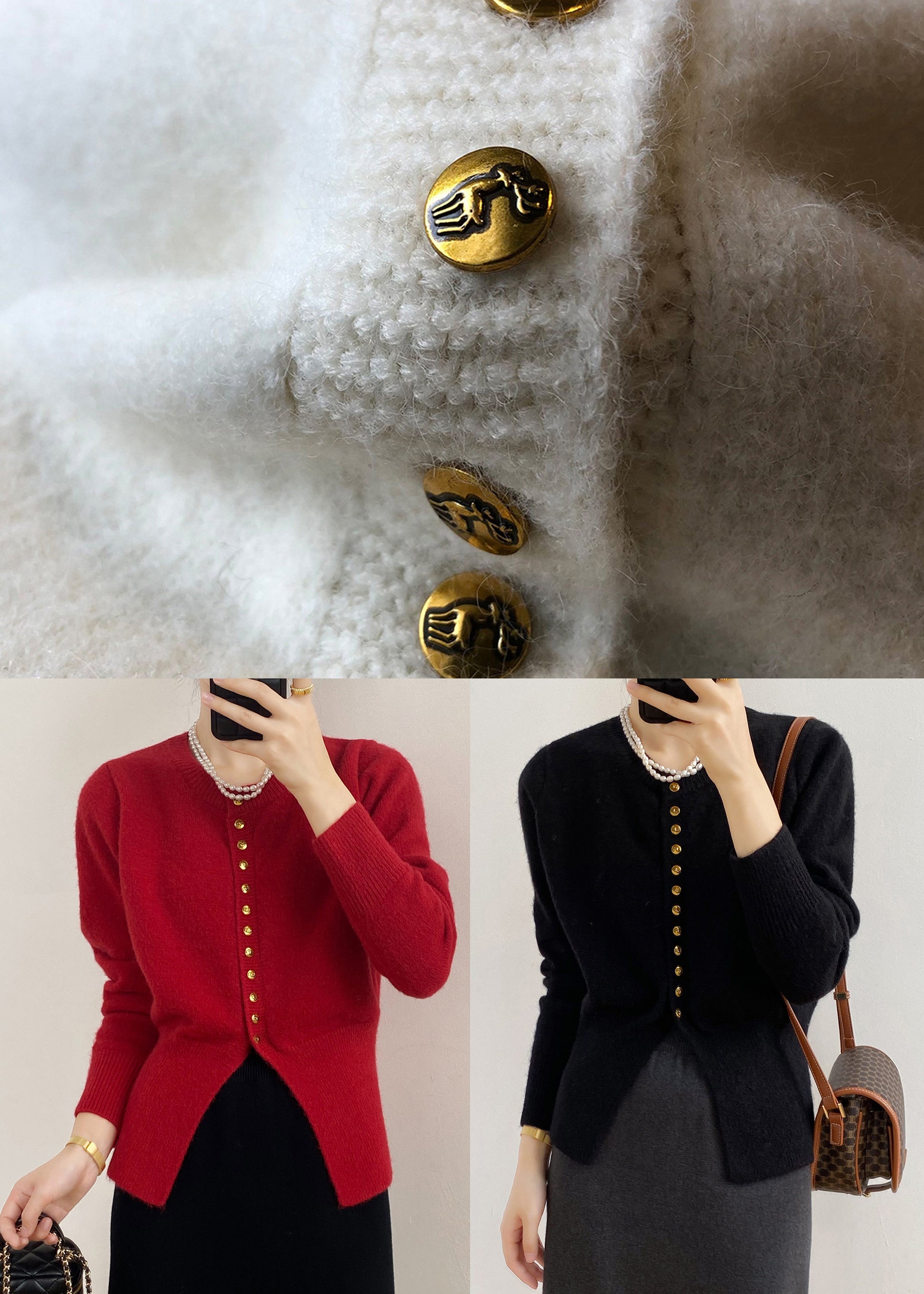Elegant Black O Neck Button Fitted Knit Cardigan Fall