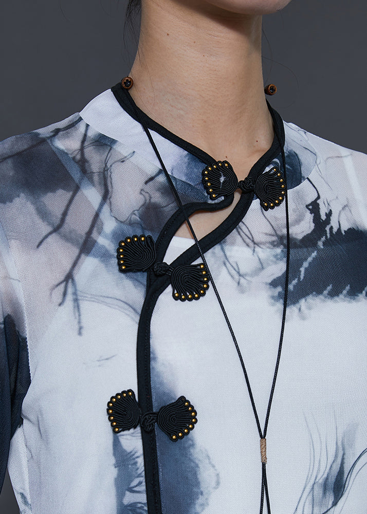 Elegant White Tie Dye Silm Fit Silk Oriental Two Piece Set Summer