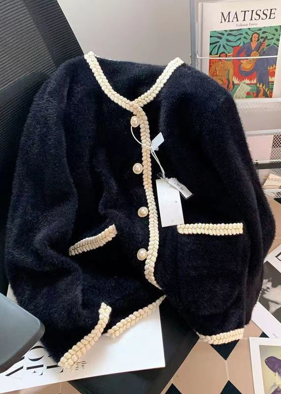 Fashion Pink Pockets Button Mink Hair Knitted Coat Fall