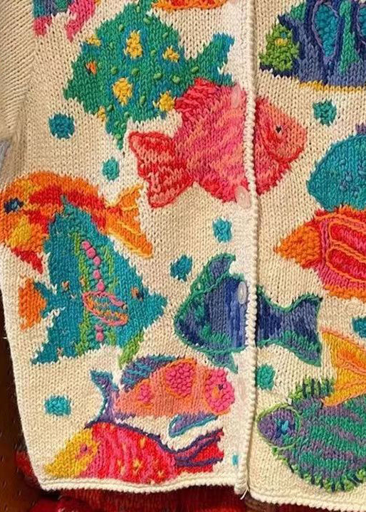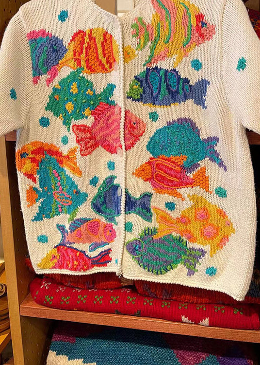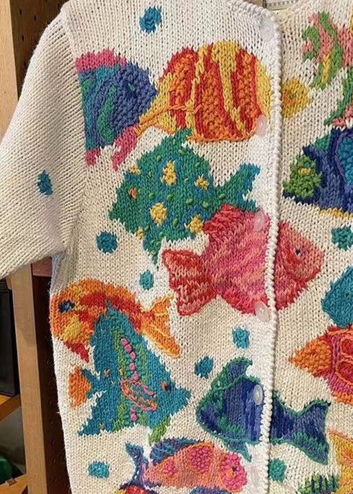 French Beige O Neck Embroideried Knit Top Short Sleeve