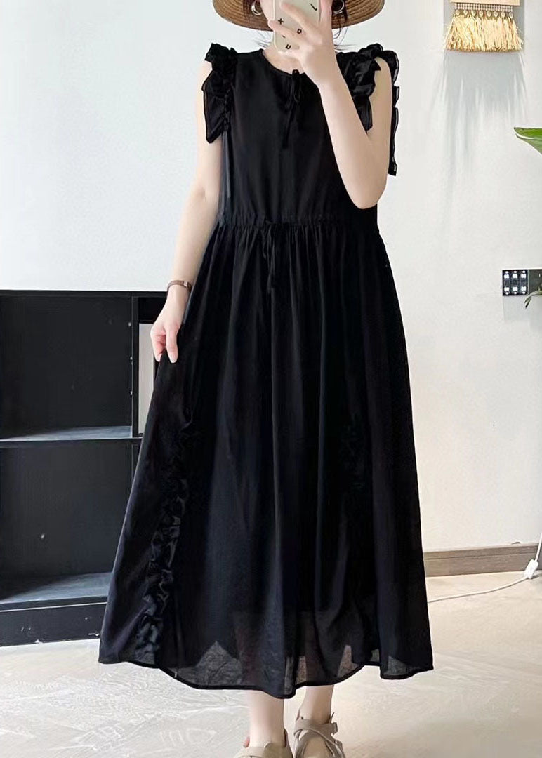 French Beige Ruffled Drawstring Cotton Dresses Butterfly Sleeve