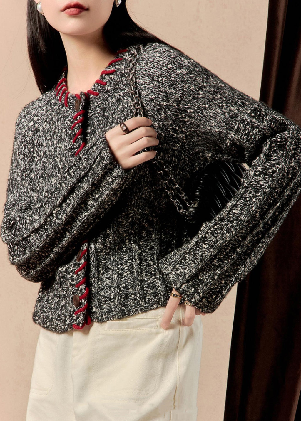 French Black Button Cozy Cotton Knit Sweaters Winter