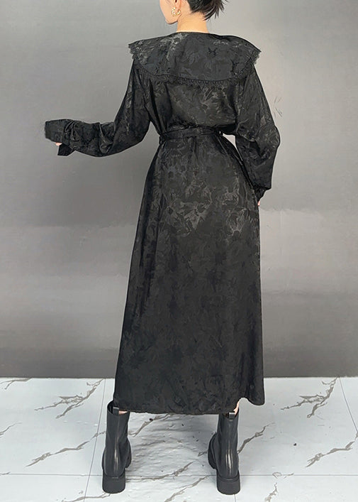French Black Sailor Collar Button Print Cotton Dresses Fall