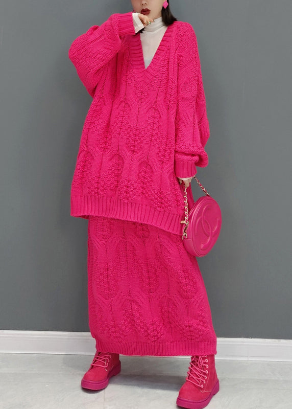 French Green V Neck Knit Sweaters And Skirts Two Piece Set Outfits Fall