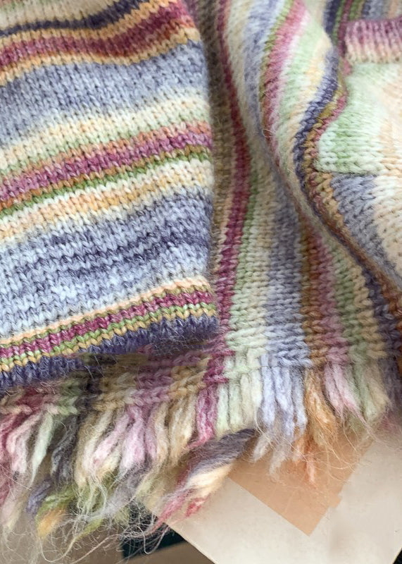 French Purple Striped Pockets Patchwork Cotton Knit Top Fall