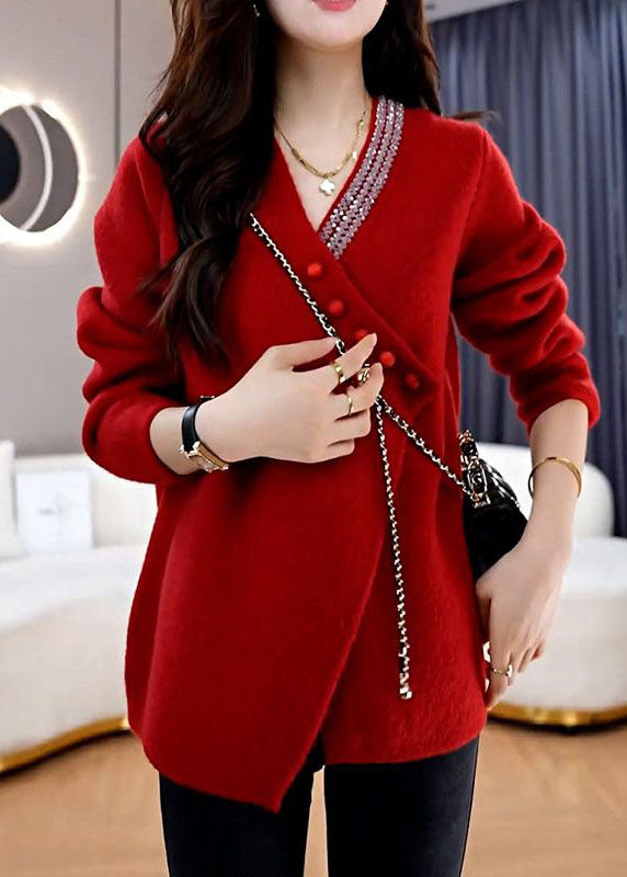 French Purple V Neck Asymmetrical Design Knit Loose Cardigan Spring